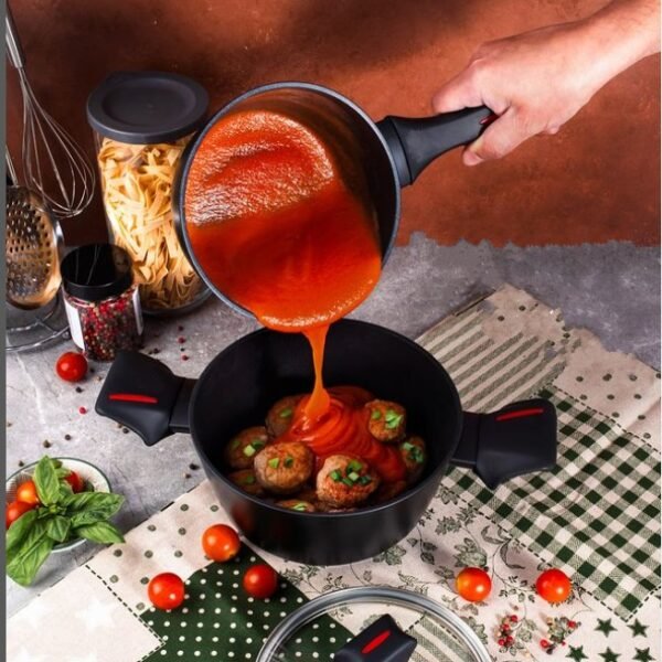 The cooking pot has a comfortable and heat-resistant handle, which keeps you cool and comfortable while cooking.