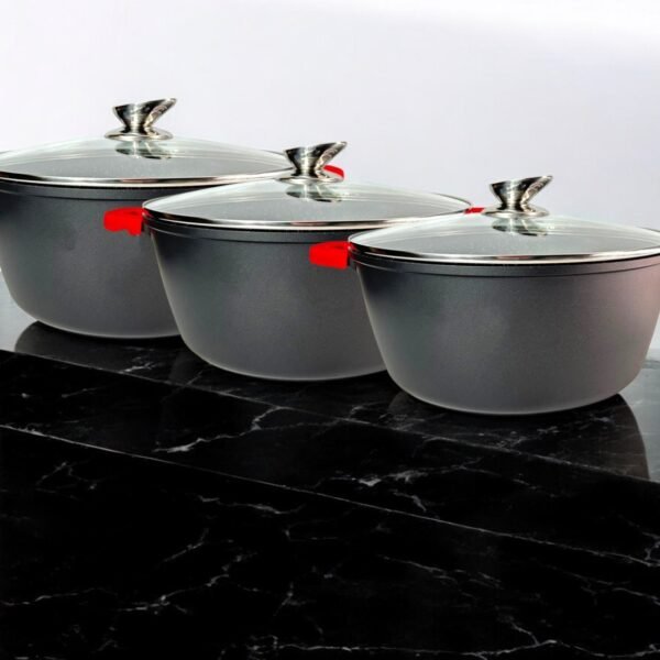 Be the first to review “Casserole SET – Die Cast – Non Stick Greblon Marble Coated – 36cm/40cm/44cm – Royalty Line” Cancel reply