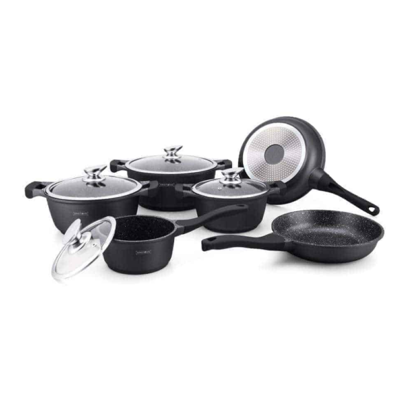 Herentals induction pan set has a 3-layer non-stick layer, which keeps it 100% free from exposure to harmful substances. And it is heavy and sturdy, for long-term use. The pan set has cool-touch ergonomic and heat-resistant handles that ensure comfortable and safe cooking.