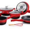 The PTFE/PFOA/PFOS-free nonstick cooking pots feature a durable nonstick coating for easy food release, cleaning and healthy cooking with a heat-resistant exterior paint that can withstand high temperatures. These pans and frying pans are safe for use on gas, electric, ceramic and induction.