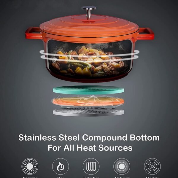 Thicker stainless steel bottom and double aluminum plate can improve heat transfer.