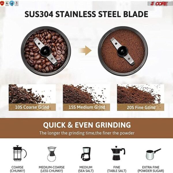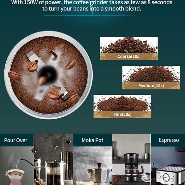 Electric Coffee/Spice Grinder – One Touch Operation – 150W – White – Royalty Line