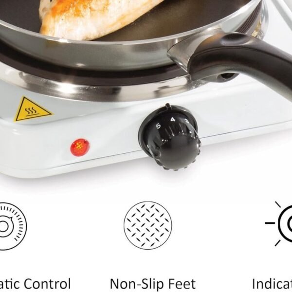 The ultimate must-have kitchen accessory, the Royalty Line electric hob (or table top hob) is perfect for those who have limited kitchen space or do not have a conventional stove due to renovation or furnishing. This 1500W hob has durable, high-quality cast iron heating elements for fast and long-lasting heating.