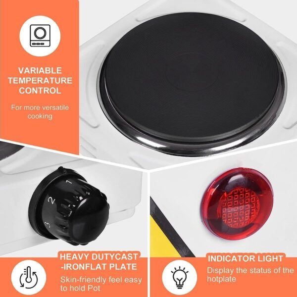 This 2500W hob has durable, high-quality cast iron heating elements for fast and long-lasting heating.