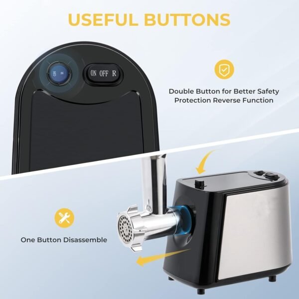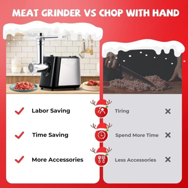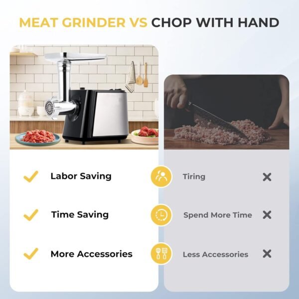 - For a better grinding experience and efficiency. We recommend you to take a break every 10 minutes and make sure the meat is free of animal tendons and bones.