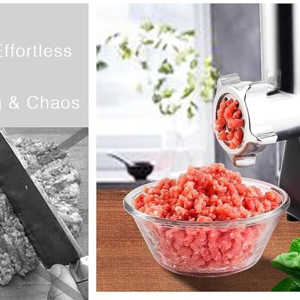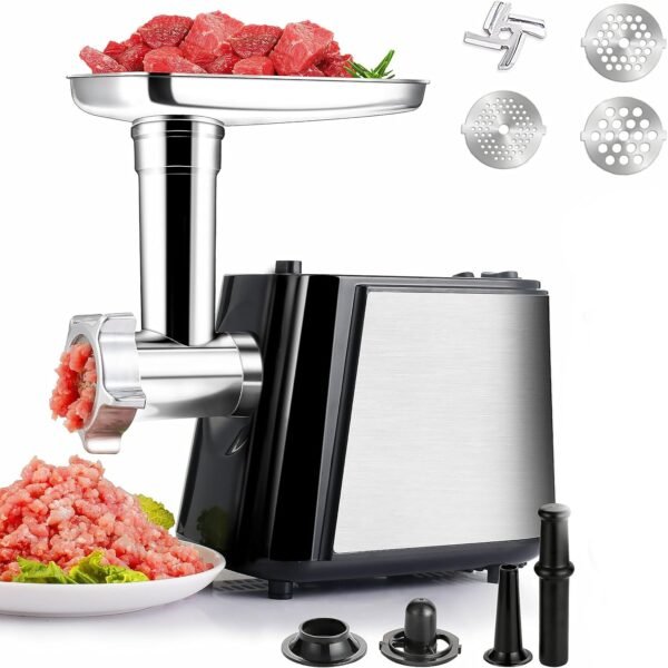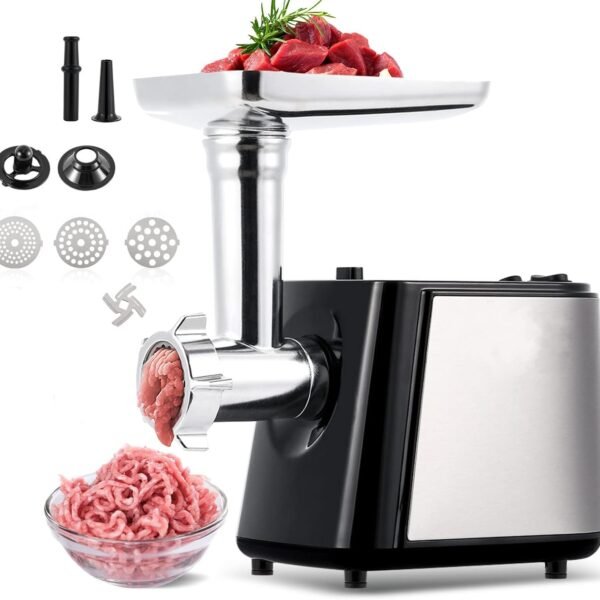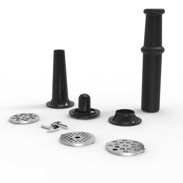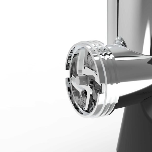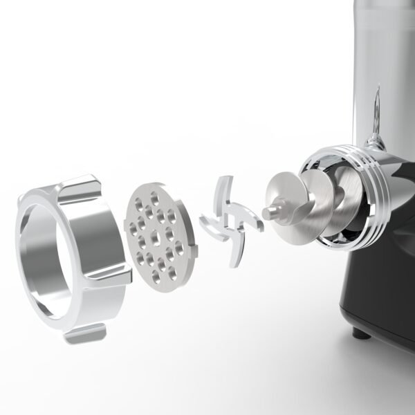 The Royalty Line Meat Grinder combines great performance with a professional design and a high-quality motor. With its quieter motor and stainless steel housing, it is the perfect combination of power, flexibility and elegance. The electric meat grinder CE approved is equipped with a powerful 500 watt motor with a maximum of 1600 watts of power and can quickly make and grind sausages, the copper motor with metal gear ensures durable performance.