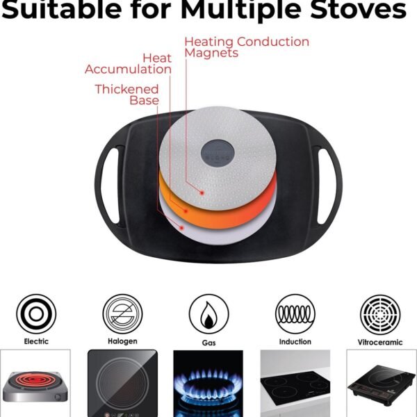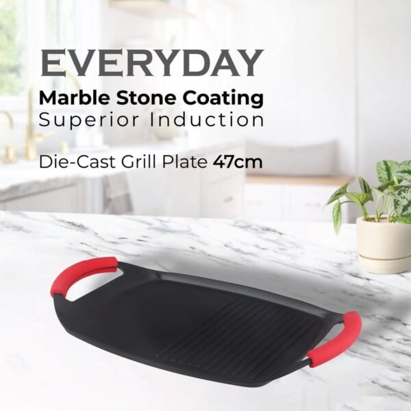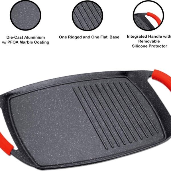 Die Cast 47 cm Non Stick Greblon Marble Coated Grill Plate / Plancha / 2 x Silicone Handles / Gas / Elctric / Ceramic / Halogen / Induction / Oven Safe