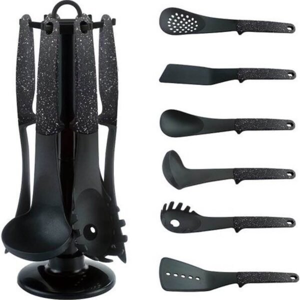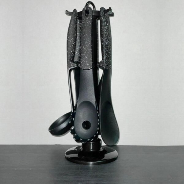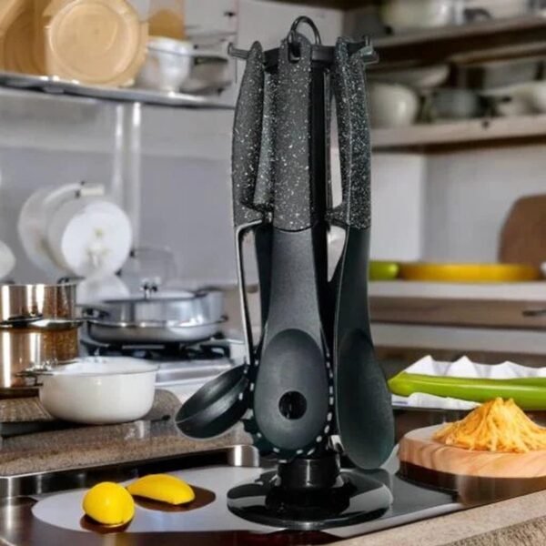 The kitchen utensil sets each come with their own neat and compact storage tower, which not only saves space on your countertop, but also rotates 360° so you can grab the utensils from any angle.