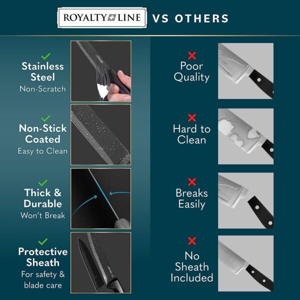 Stylish Design: The elegant black color and modern design make this knife set a stylish addition to any kitchen, elevating your cooking space with functional elegance.