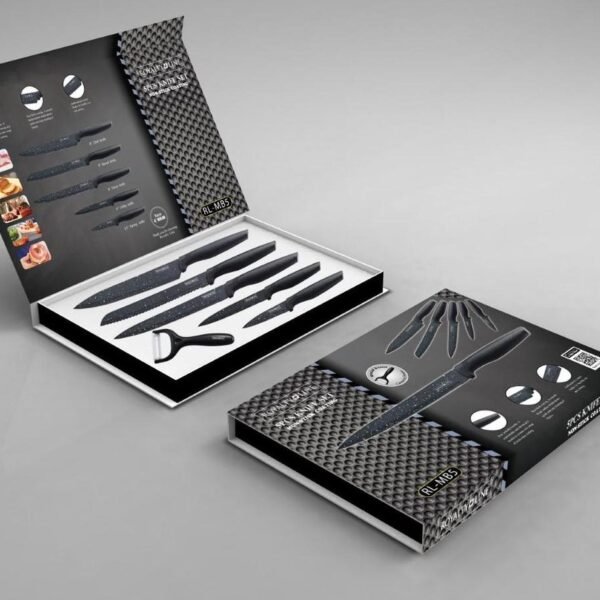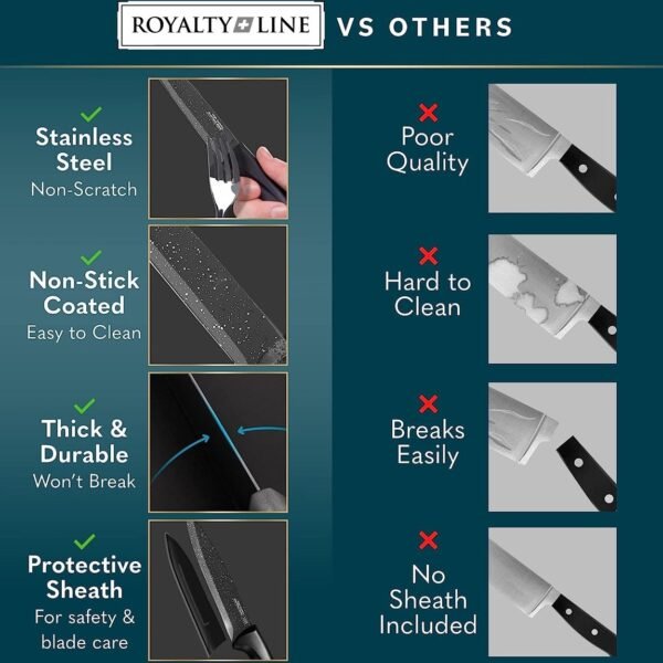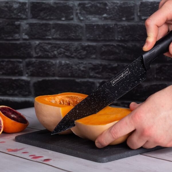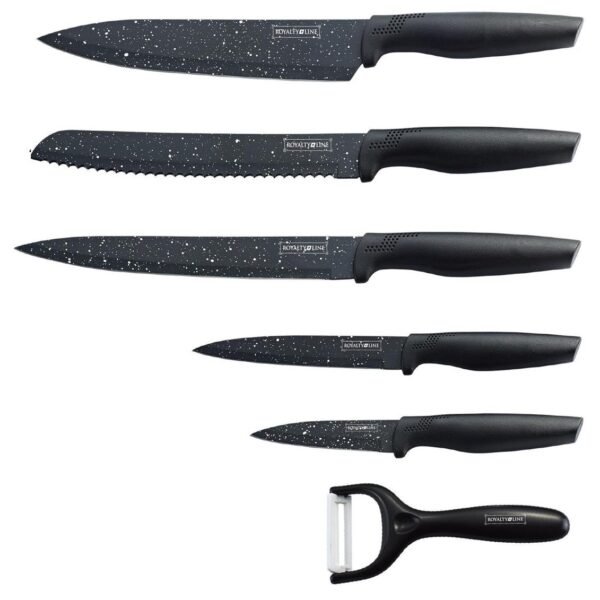 Prepare your food with this beautiful modern knife set from Royalty Line. The knife set has ergonomic non-slip handles and fits very comfortably in the hand. The knife set has a non-stick coating, which ensures extra hygiene and is easy to clean. The knives retain their sharpness for a very long time.