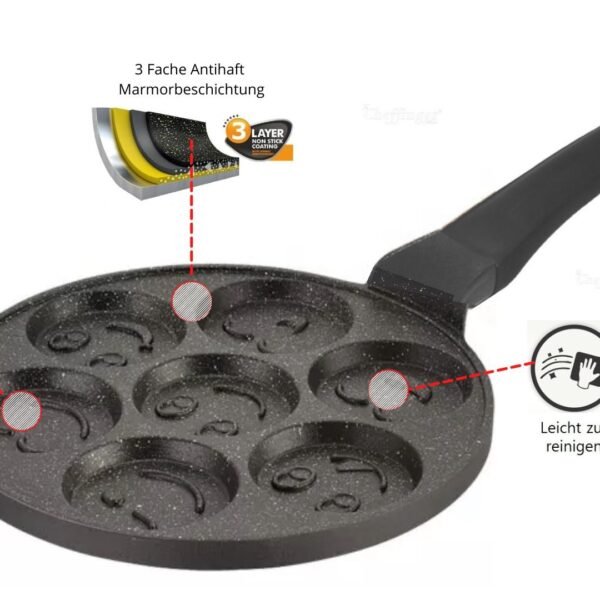 Pancake pan smiley emoji – 7 Hole – Marble Coating – Cheffinger