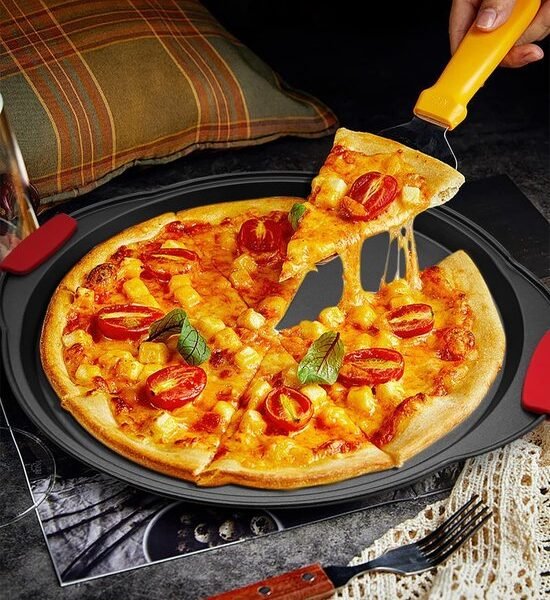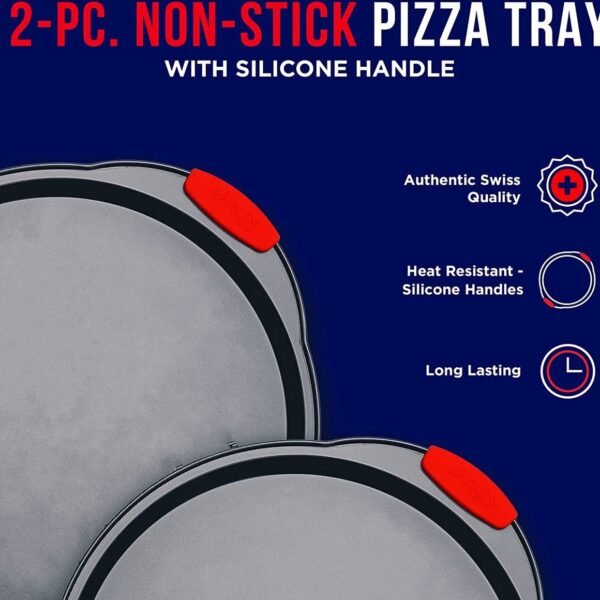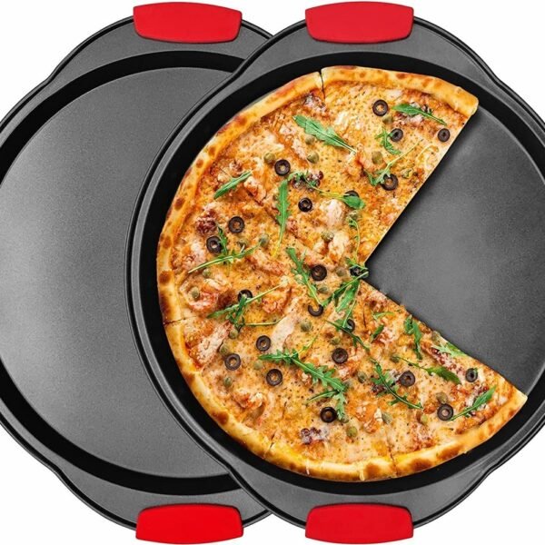 2 Pcs Pizza Pan Set With Silicone Handle First Pan 38*36*2 / Second Pan 43*41*2