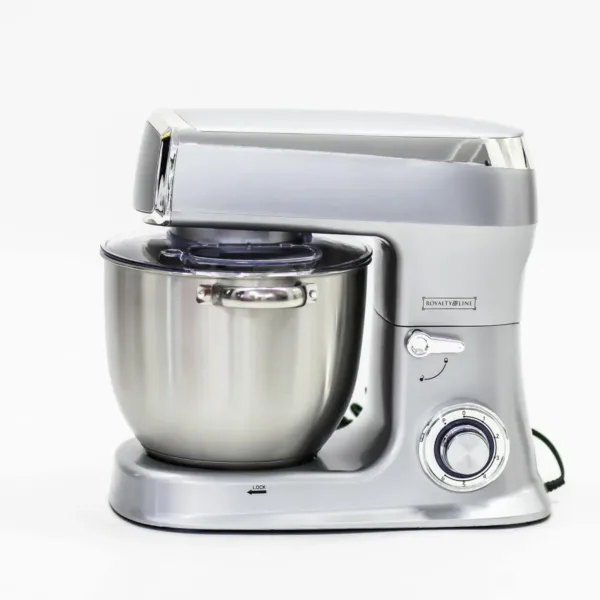 Planetary Mixer With Whisk, Dough Hook, Mixing Hook, Pan Scraper, With Splash Guard & Stainless Steel Mixing Bowl 7.5 L- 2100W – Silver – Royalty Line