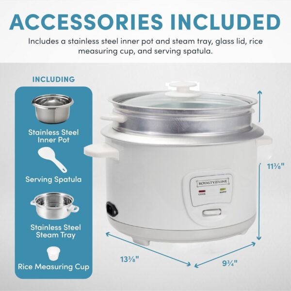 Enjoy easy home cooking with the Royalty Line Rice Cooker and Food Steamer. Restaurant-quality rice. Healthy steamed meals. Delicious one-pot meals. Prepare all this and more at the touch of a button! Royalty Line takes the “chef” out of home cooking and turns kitchen time into your time. Help the kids with homework, get creative during playtime, or pick up that novel you’ve been waiting to dive into. All while delivering warm, hearty, and healthy meals the whole family will love.