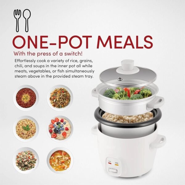 The unique steam tray accessory delivers perfectly cooked vegetables, poultry, fish and more in one compact cooker. Enjoy a delicious meal every night of the week without compromising on quality!