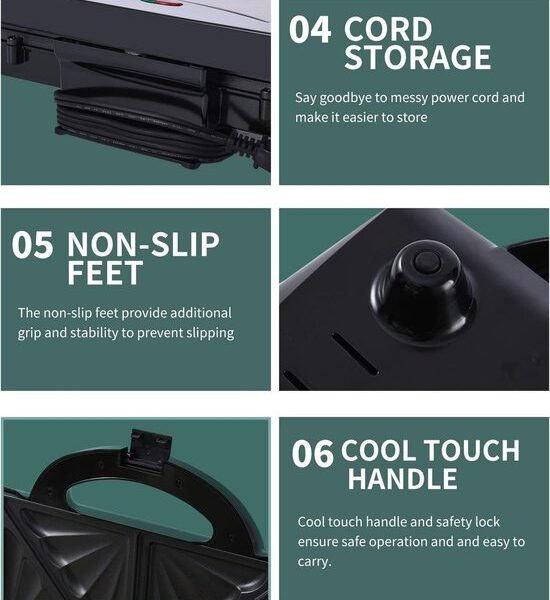 The non-stick coated plates give you an easy toasting experience because you don’t have to worry about your buns sticking to the plates. After toasting, simply open your sandwich maker and you will find perfectly toasted sandwiches. The plates also mean that you can clean them very easily with a damp cloth.