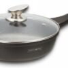 Royalty Line modern aluminum nonstick ceramic frying pan is manufactured without harmful substances such as PFOA, PFOS, PFAS, APEO, LEAD and CADMIUM, etc. The heat-resistant handles and clear shatter-resistant glass lid ensure that you can keep the food in the pan while cooking can keep an eye on.