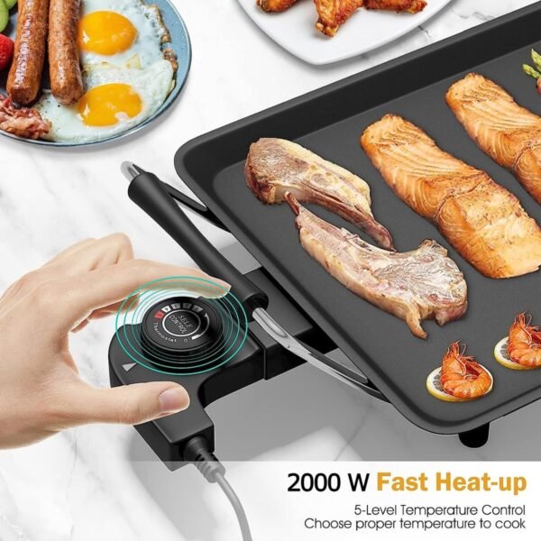 Have full control over the heat of your teppanyaki hob with the adjustable temperature control knob that allows you to choose from 5 different heat settings.