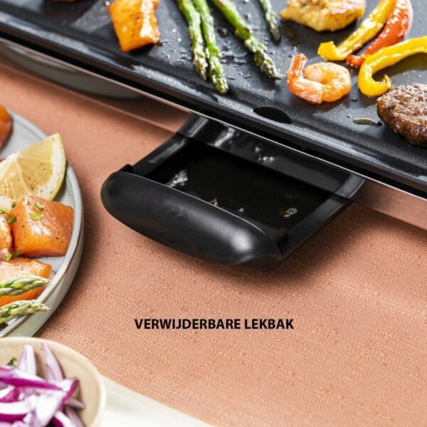 It is a healthy way of cooking because thanks to the non-stick plates you only need to add a little oil, and excess oil released during cooking can be drained into the removable drip tray.