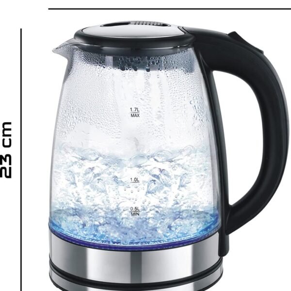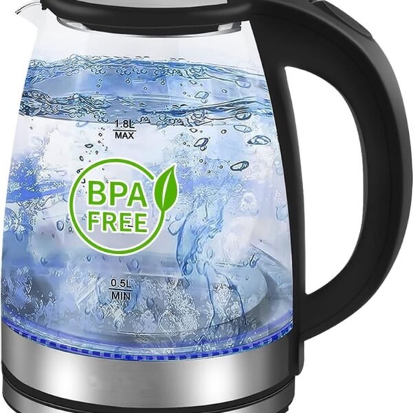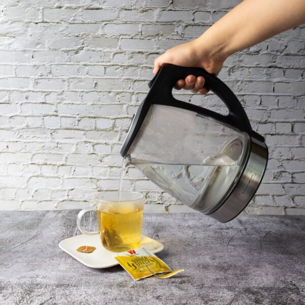 With the advanced built-in thermostat controller, the glass kettle has built-in auto shut-off and boil-dry protection technology. The kettle switches itself off when the water has completely boiled or when there is no more water in it.