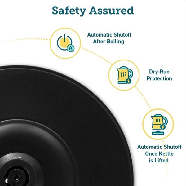 - Automatically shuts off when water boils and has boil-dry protection to prevent scorching when water is running low