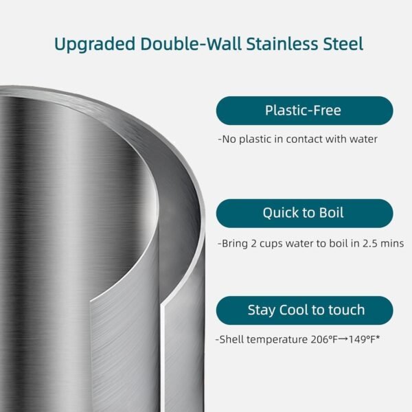 • Easy to use with a simple on/off switch and features a built-in filter to prevent mineral deposits from getting into your cup